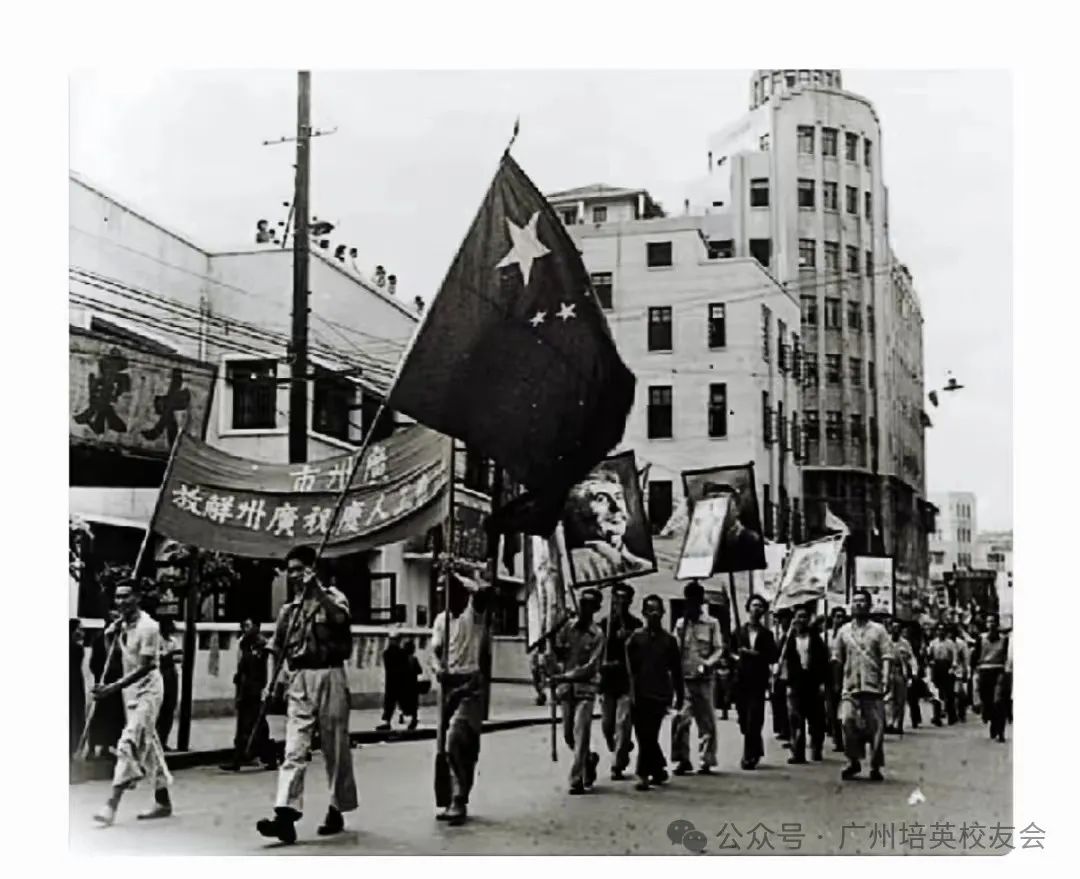 而广州培英中学(鹤洞)是在全市校园内升起第一面的五星红旗的学校。