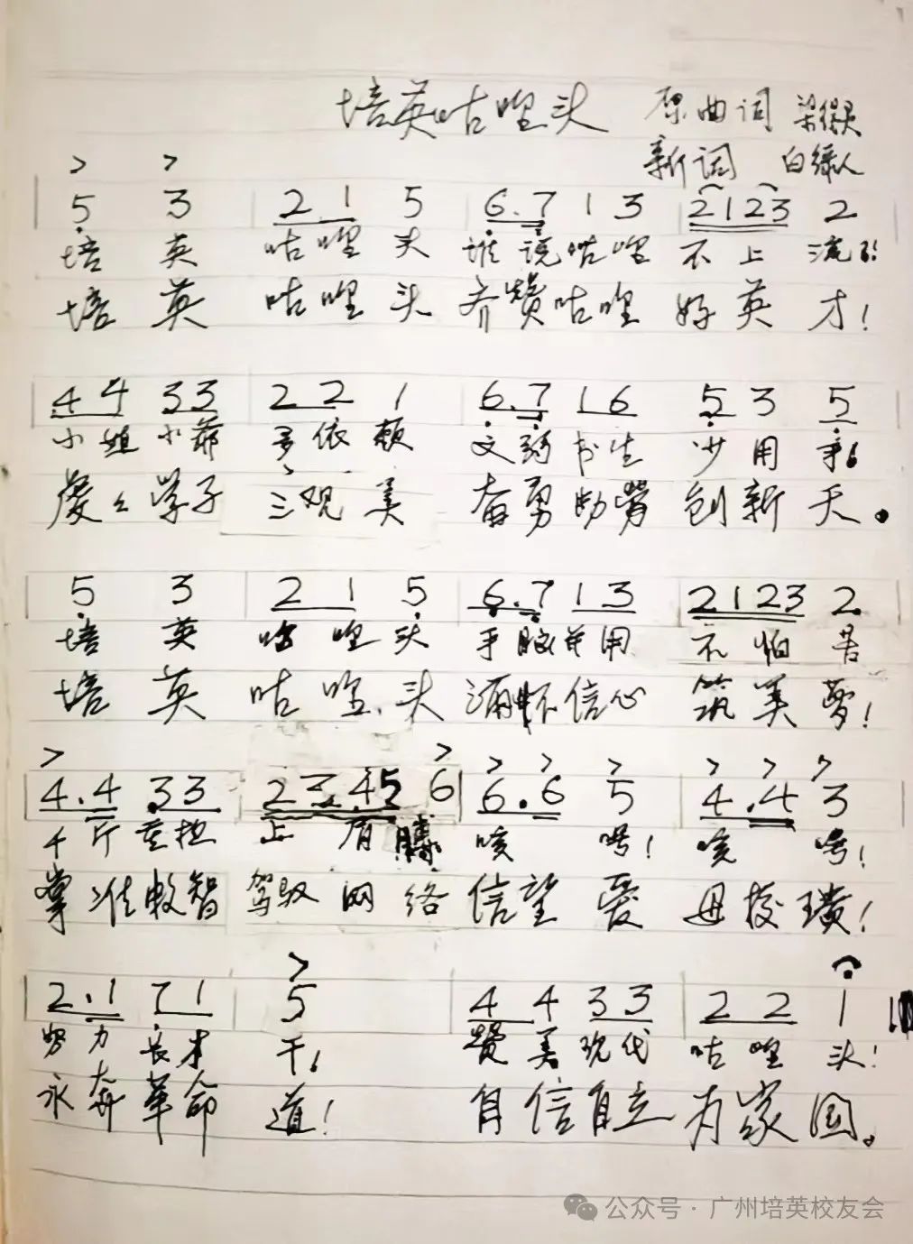 现年96岁的张道生学长,欣然接了学校领导倡议改编“咕喱头”校园歌歌词的提议,并在2023年改编了第一稿。张道生学长还呼吁更多的校友参与改编,共同将这首划时代意义的培英校园歌歌词赋予新时代的元素。